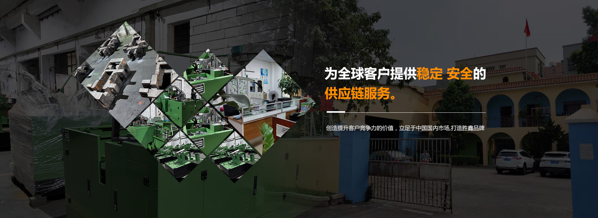 東莞市勝鑫五金機械有限公司成立于2013年,是一家集設計開發(fā)、生產制造,質量管控,物流平臺于一體緊固件生產設備整體解決方案綜合性企業。本廠擁有經驗豐富專業機械設計開發(fā)團隊及配置高精密度的加工、質量控制設備用于精密機械制造。本公司專業制造合模機、開合模機、打頭機、冷鐓機、搓牙機、一模二沖打頭機、四模四沖螺絲成型機等緊固件生產設備并提供各機型配件生產支持,以經驗豐富的專業設計及以先進生產技術,優(yōu)質服務,提供適合客戶需求的各類緊固件生產設備,設備廣泛使用于各類緊固件生產,并可根據客戶要求,為客戶設計制造各種非標螺絲機械,并提供調試,配件供應及專業維修服務。結合客戶的個性化需求,真誠服務。以長期、穩(wěn)健、創(chuàng)新的經營風格,精密的專業技術、優(yōu)質的產品、準時的納期,建立了良好的評價與信譽,受到了新老客戶的廣泛支持、肯定與信賴。 創(chuàng)造提升客戶競爭力的價值,立足于中國國內市場,打造勝鑫品牌,為全球客戶提供穩(wěn)定的安全的供應鏈服務。